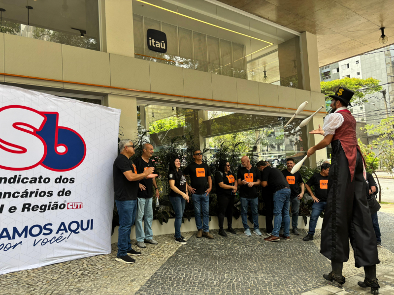 A mobilização, que contou com performances circenses para chamar atenção da população, faz parte de um Dia Nacional de Luta, com a participação de bancárias e bancários de todo o Brasil. A campanha cobra, também, que o banco adote uma postura mais responsável em relação à saúde mental das trabalhadoras e dos trabalhadores, que têm enfrentado adoecimento e sobrecarga de trabalho.
